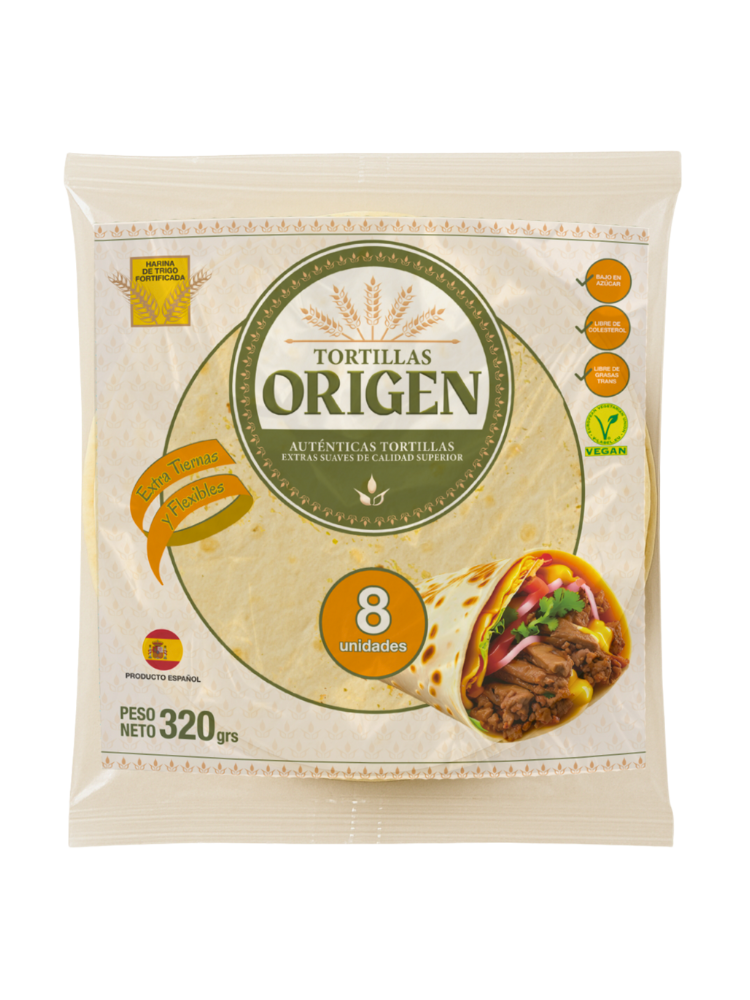 Inspired by tradition and crafted with European quality standards, our Tortillas Origen are soft, flexible, and full of flavor. Perfect for wraps, burritos, quesadillas, or as a base for endless recipes. Available in various sizes and formats, with classic, whole wheat, and fortified flour options — ideal for both retail and foodservice channels.
